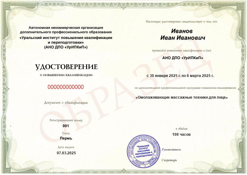Учебный план программы повышения квалификации «Омолаживающие массажные техники для лица»