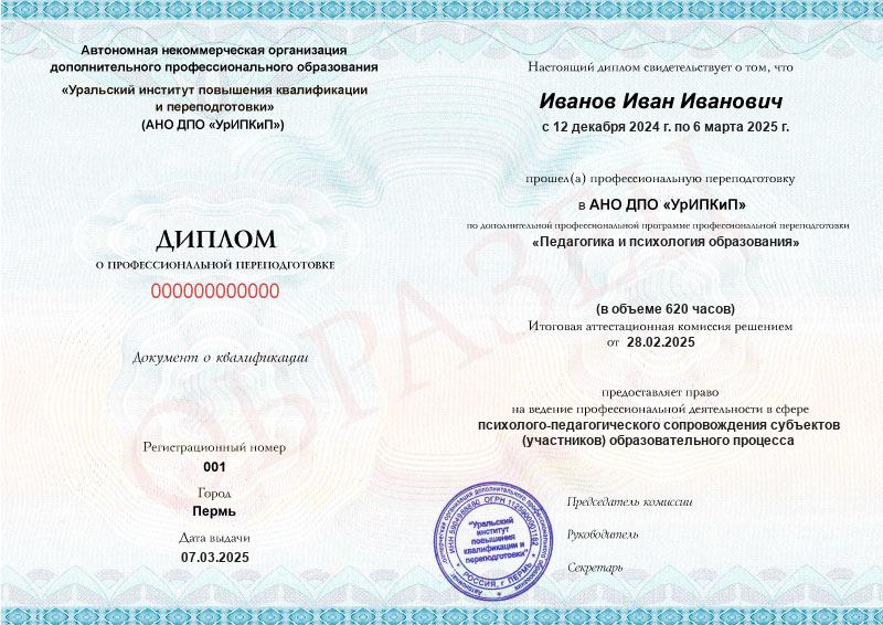 Да, дипломы и удостоверения оформляются в соответствии с действующим законодательством РФ. Документы печатаются на специальных бланках, заверяются печатью АНО ДПО «УрИПКиП».
