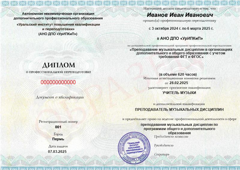 • 2 квалификации: Учитель музыки + Преподаватель музыкальных дисциплин