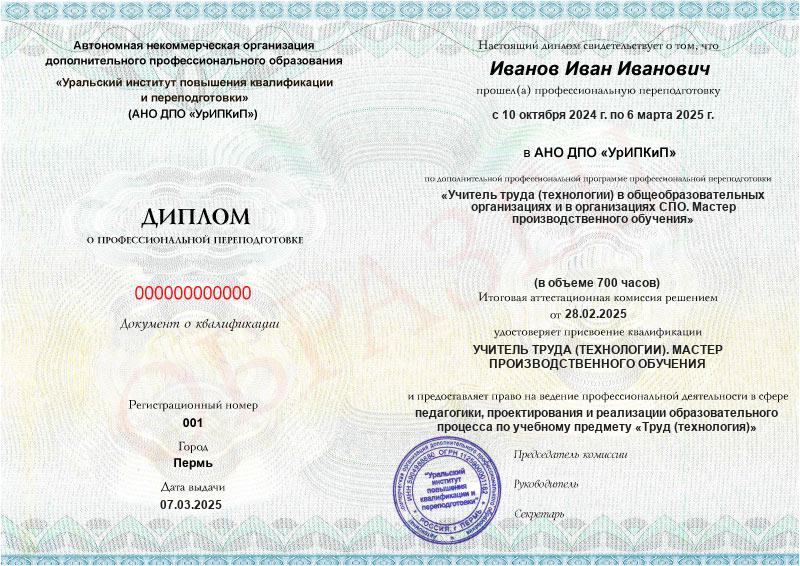 - Образец диплома о профессиональной переподготовке.